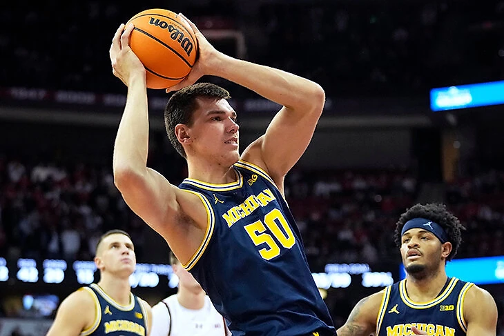 Центровой университета Мичиган Владислав Голдин сейчас по-взрослому разматывает соперников в студенческой ассоциации NCAA.
