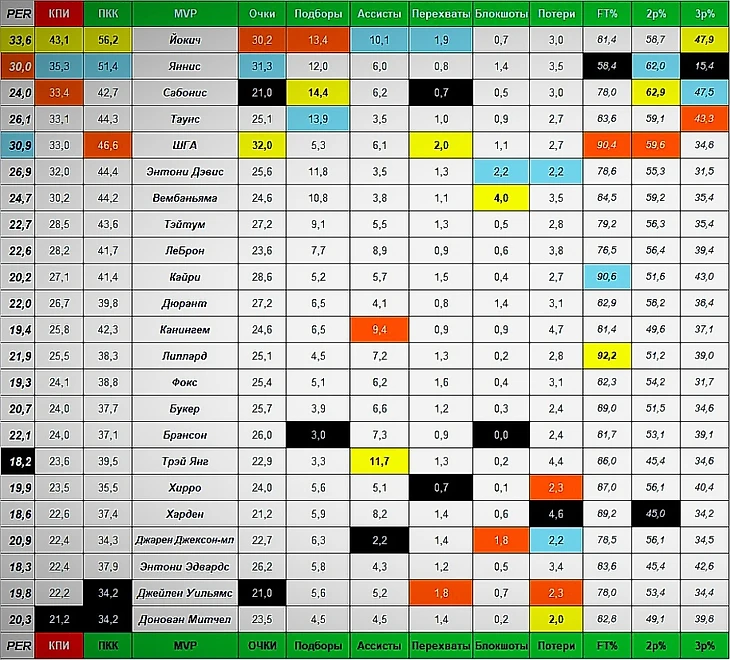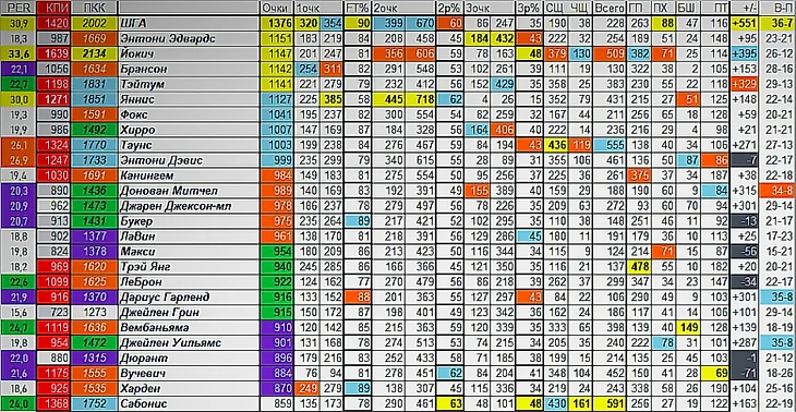 При этом нельзя сказать, что ШГА тянут за уши в гонке MVP. Канадец плохо начал регулярку только в одном аспекте (броски с дальней дистанции), но вполне успешно исправляет ситуацию, прибавляя параллельно на своих сильнейших скилах: атака со средней, перехваты и умение зарабатывать штрафные). Не изменяя себе, Александер игнорирует подборы – достаточно весомый показатель, поднимающий все продвинутые метрики и расширяющий влияние на игру. Но Карри уже проводил сезоны, сводящие с ума все коэффициенты со средним количеством подборов, и получил за них свои индивидуальные награды. Так что дорожка протоптана, она легальна (никаких фокусов с целью обмануть систему), ШГА реально ведет игру очень качественно, стараясь не перечеркнуть уже проделанную за полсезона работу.