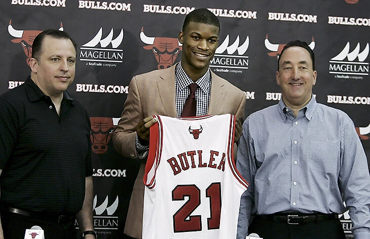 В первые два сезона он отыграл в старте всего-то 20 матчей. Батлеру потребовалось три года, чтобы убедить Тома Тибодо в том, что именно с ним связано будущее команды. К концу новичкового контракта он показал не просто готовность прогрессировать, а плоды прогресса: в сезоне-2014/2015 Джимми дебютировал на Матче звезд, взял титул «самого прогрессирующего» и замкнул десятку номинантов на награду «лучшему защищающемуся».