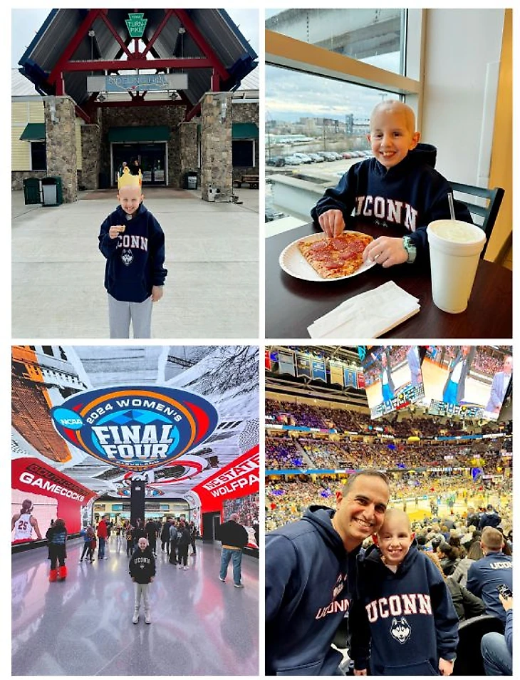 Как и многие фанаты UConn, Дэн забронировал отель в начале прошлого сезона: Кливленд, «Финал четырех». Просто, на всякий случай. Он знал, еще осенью, когда делал бронирование, что, вероятно, они не смогут поехать — лечение, поездки, всё стало немного сложнее. Ситуация с Эбби не улучшалась, как хотелось бы всем. К январю, когда UConn буквально едва мог собрать состав для игры из-за большого количества травмированных игроков, казалось, что у них почти нет шансов попасть в «Финал», Дэн был на грани отмены бронирования отеля полдюжины раз. Но UConn всё-таки прошёл в заветную четверку и, когда Карли Муни — сотрудница UConn, которая помогает игрокам во всем и также стала близким другом семьи Зейттонов, позвонила, чтобы сообщить, что у команды есть два билета для них, ему предстояло принять окончательное решение. Они провели целую неделю в Детской больнице Филадельфии, где у Эбби забирали Т-клетки для возможного будущего лечения, родители были измотаны, она была измотана. Её бат-мицва, уже несколько раз перенесенная, должна была состояться через неделю. Стоит ли это того? Стоит ли ехать? Будет ли безопасно для неё находиться среди такого количества людей?