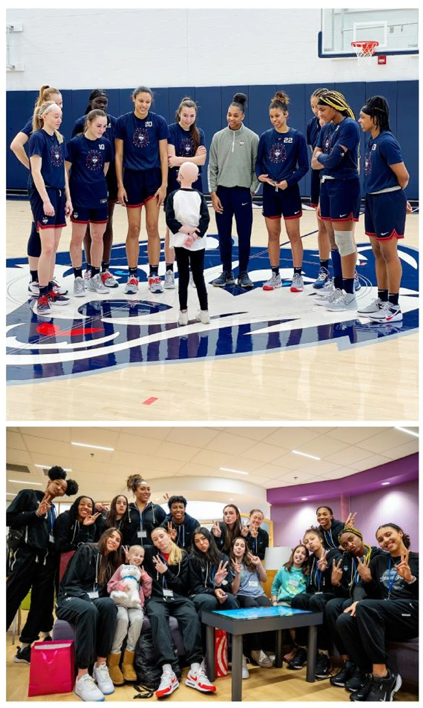 Первый контакт Эбби с игроками UConn случился через Эвину Уэстбрук — защитницу из Орегона, которая приехала в Коннектикут из университета Теннесси. Они встретились в феврале 2022 года, через пять лет после того как Эбби поставили диагноз — рак. Это был один из тех дней, когда команда, после тренировки, проводила время с пациентами из Детского медицинского центра Коннектикута. Это было мило и значимо — все фотографировались, бросали мячи в корзину, а некоторых детей даже посадили на плечи игроков, чтобы те смогли забить мяч сверху. И все могло бы закончится так — вдохновляющим днем и прекрасными моментами, на память, но «Мамма Э», как команда называла Уэстбрук, захотела узнать больше об этой девочке с «острым характером», которая как раз проводила время в ее группе, о девочке в шапочке, которую было невозможно не заметить. Большинство детей, с которыми встречались игроки, были большими фанатами баскетбола, обожали Huskies, правда иногда они были застенчивыми или немного напуганными. Эбби нравился баскетбол и UConn и она не стала одной из тех, кто стоял в оцепенении.