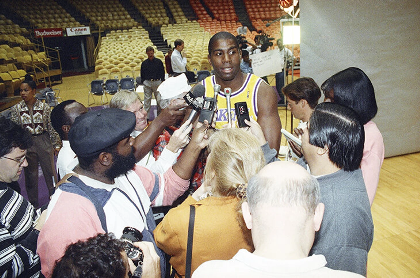 Первоначально пресс-конференция была запланирована на 8 ноября, но утром 7 ноября журналисты местной радиостанции связались с директором PR-отдела «Лейкерс» Джоном Блэком и сообщили, что они в курсе решения Джонсона завершить карьеру по причине обнаружения у него СПИДа (именно так, а не ВИЧ). Объяснять что-либо и взывать к благоразумию прессы не было времени, было ясно, что медиа обо всем узнали и в любой момент могли интерпретировать ситуацию самым кошмарным образом.