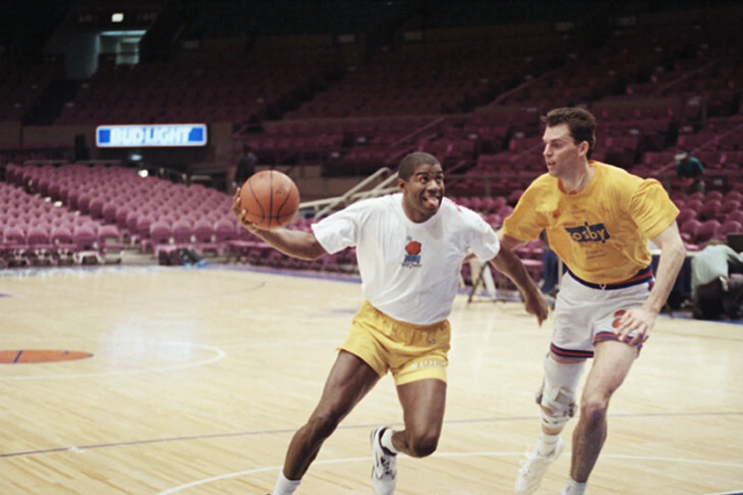 «Он не мог присутствовать на тренировках «Лейкерс». Его появление вызвало бы ненужные разговоры, да и некоторых парней его присутствие смущало. Нужно было действовать очень аккуратно. Поэтому Ирвин играл в баскетбол в спортивных клубах Лос-Анджелеса. Он играл с врачами, юристами, маклерами. По сути, это была его основная подготовка к Олимпиаде. Я говорю совершенно серьезно. В 90 процентах случаев это были обычные люди, не профи. С 7 ноября, когда было объявлено об уходе из баскетбола, и до Матча всех звезд он делал все возможное, чтобы не растерять форму. Я ходил с ним тренироваться, я был тогда моложе и тоже играл против него. Он оставался в форме», – вспоминал Розен.