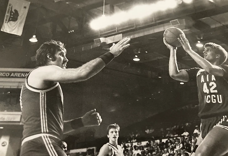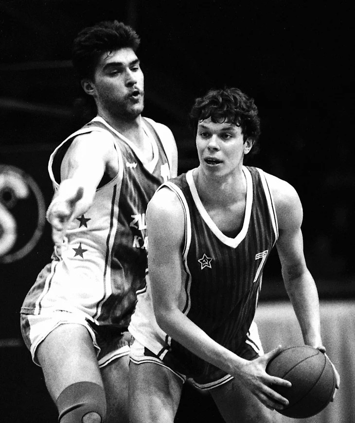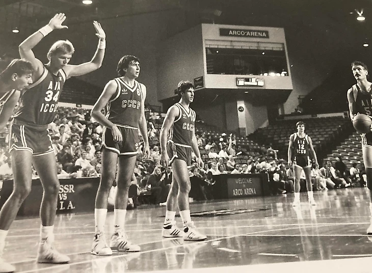 30 октября 1986. Сакраменто. Arco Arena. Матч СССР — AIA — 82:90. Владимир Ткаченко в этой игре набрал 12 очков, а Тийт Сокк (на дальнем плане) — 17