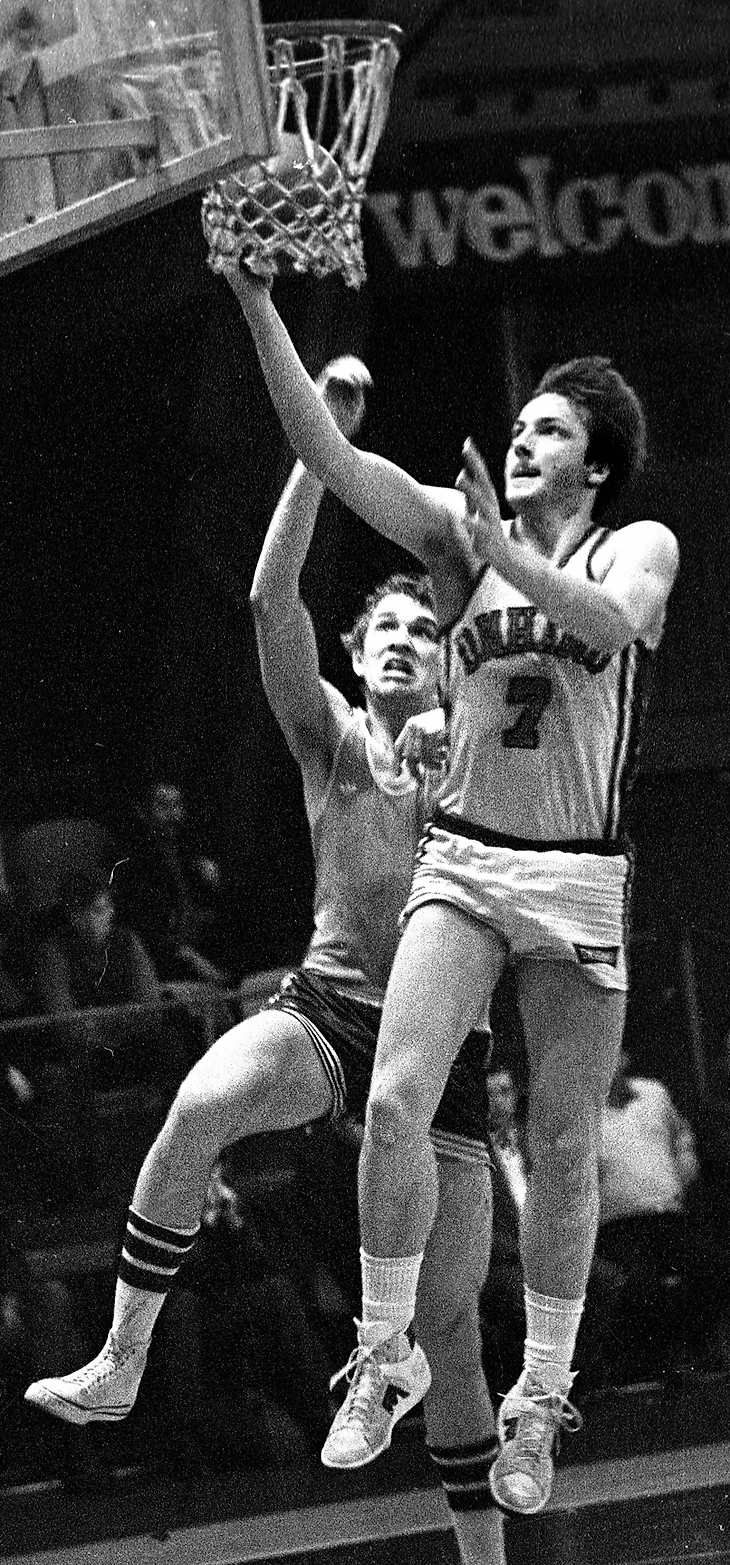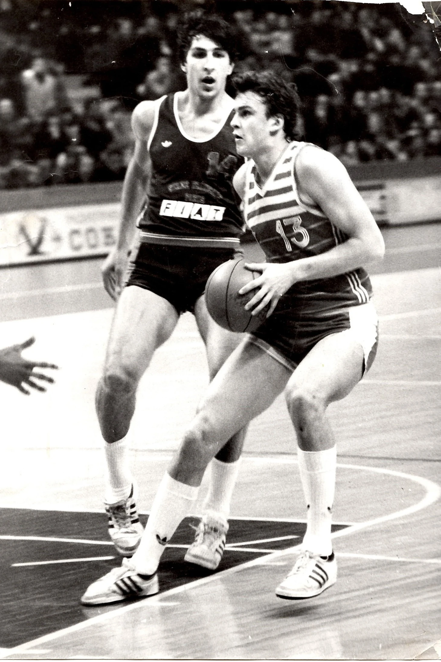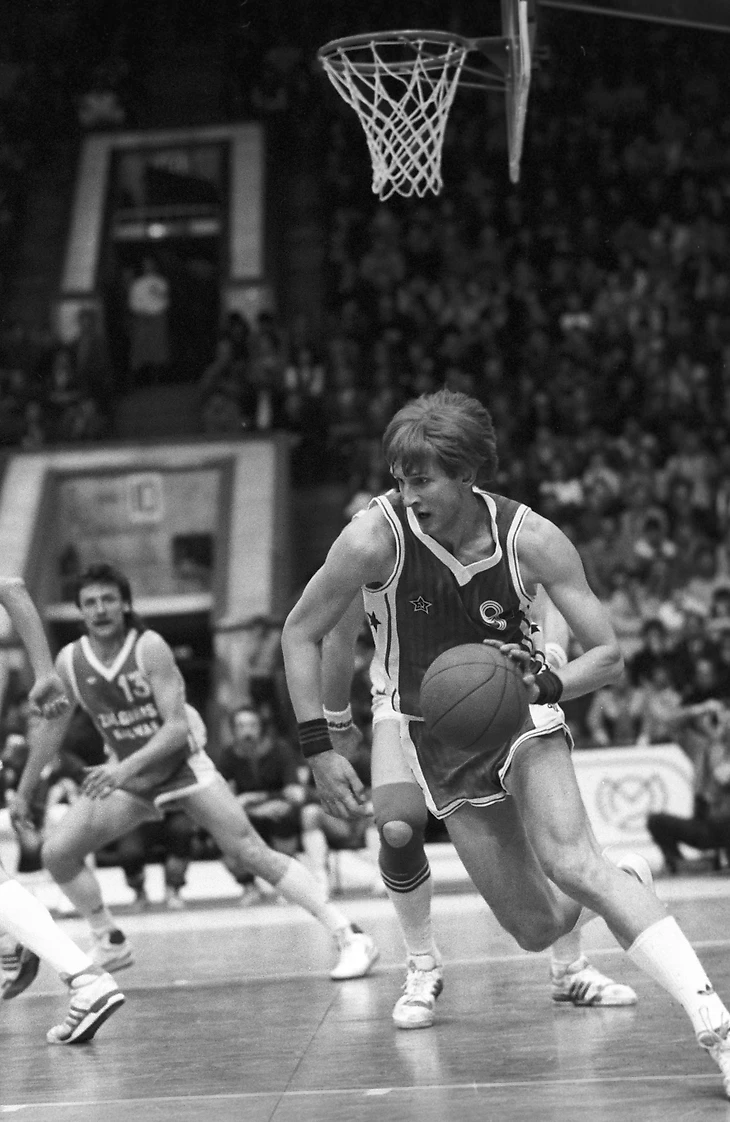 Переход тяжелого форварда «Строителя» Александра Волкова в ЦСКА — главное событие зимы-1986-87 (на фото, сделанном годом ранее, он атакует кольцо миланской «Олимпии»)