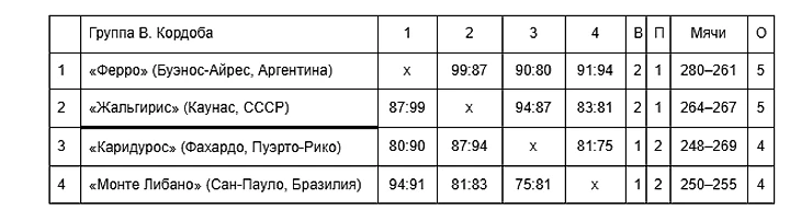 ½ финала. «Цибона» (Загреб, Югославия) — «Жальгирис» — 104:77. «Ферро» — «Коринтианс» (Рио-де-Жанейро) — 103:84.