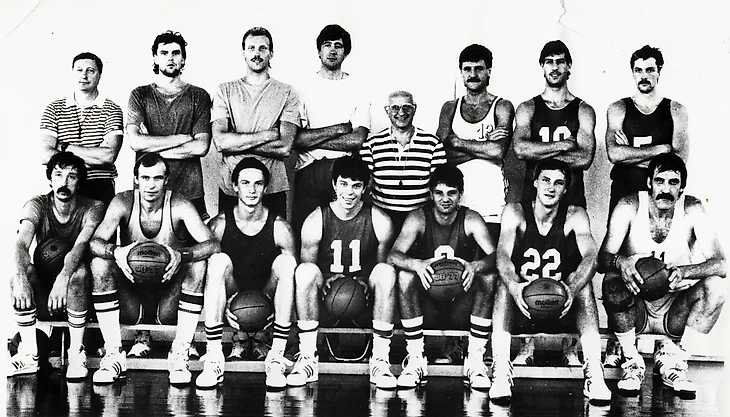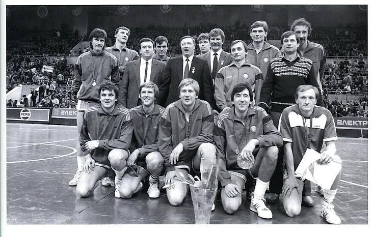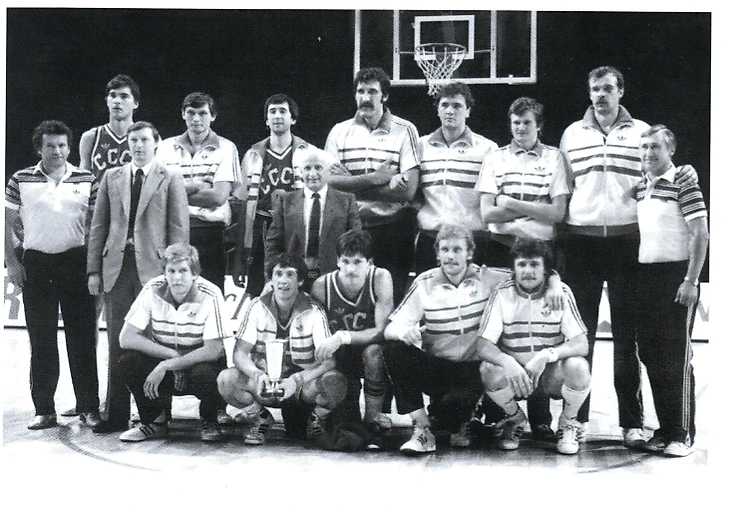 Вот эта команда, победитель отборочного олимпийского турнира-1984 (слева направо): дальний ряд — Арвидас Сабонис, Андрей Лопатов, Сергей Тараканов, Владимир Ткаченко, Николай Дерюгин, Сергеюс Йовайша, Александр Белостенный; ближний ряд — Хейно Энден, Станислав Еремин, Валдис Валтерс, Римас Куртинайтис, Вальдемарас Хомичус. В среднем ряду — врач Виталий Карчевский, тренер Юрий Селихов, главный тренер Александр Гомельский, массажист Владимир Беляков. Шрифтом выделены олимпийские чемпионы-1988