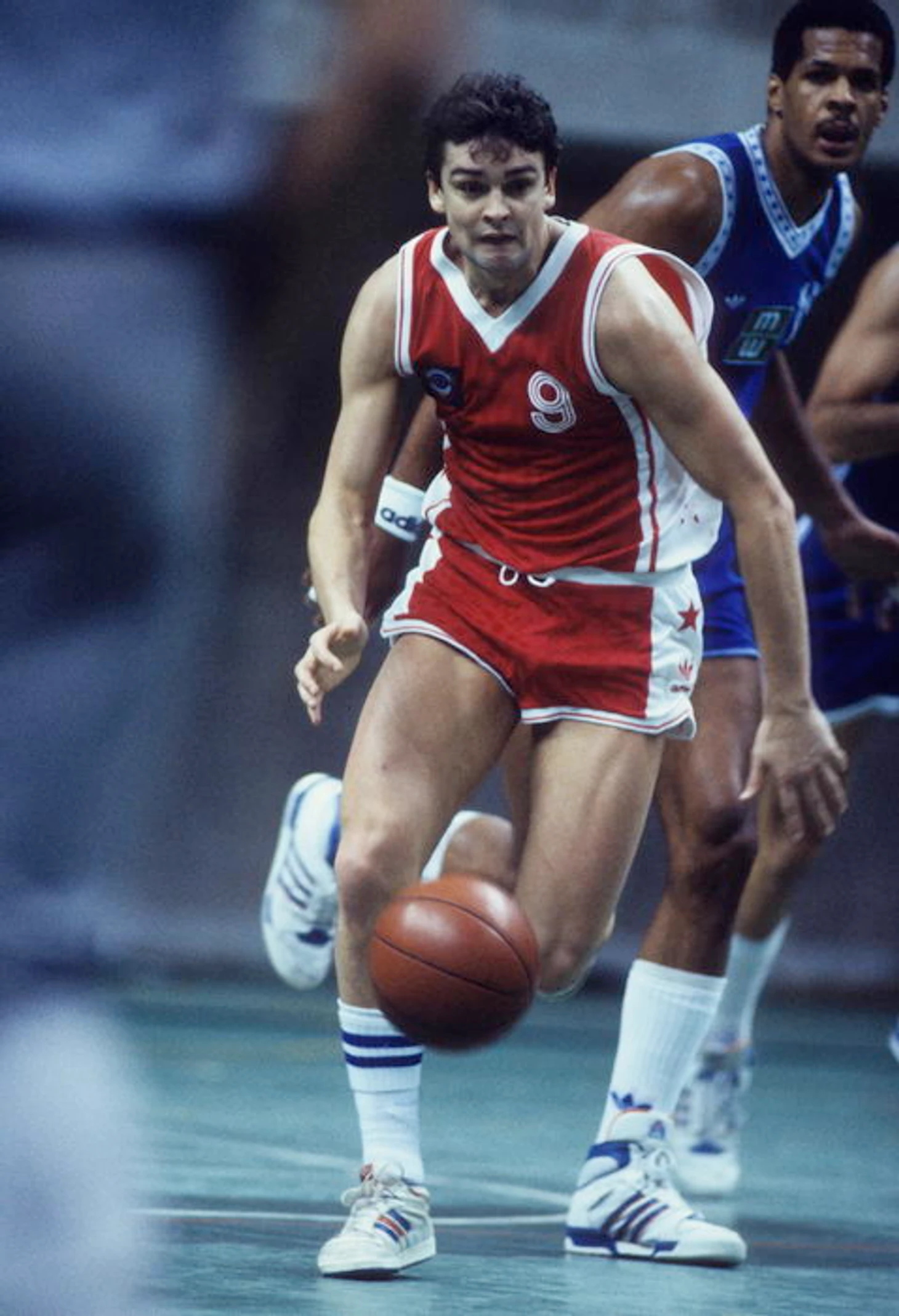 10 января 1988. Москва. Дворец спорта «Динамо». Лидер «Калева» Тийт Сокк против бывшего одноклубника Игоря Корнишина (справа). Победа в этом матче — 73:70 позволила московским динамовцам обойти ленинградский «Спартак» в борьбе за попадание в «восьмерку»