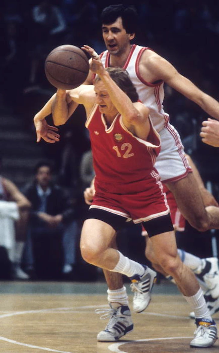 — Две недели мы провели на базе в Сухуми, «готовясь» к исторической встрече с профессионалами НБА. Бегали кроссы по стадиону с ведением мяча, впереди Папа темп задавал. С кем предстоит играть, кто такие эти профессионалы, какая у них тактика, что за смешанные правила — никто понятия не имел и никто нам ничего не объяснил. А потом все удивлялись, почему сборная не укладывается в 24 секунды в атаке? Так мы привыкли атаковать 30 секунд, потому и не укладывались.