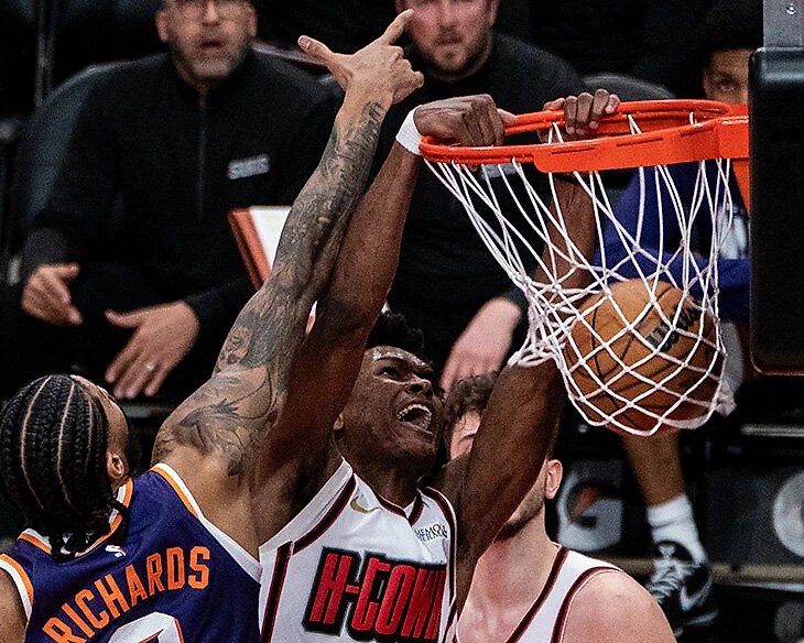 Мы видели этих людей, которые были классными атлетами без броска. Если они в атаке – не центры (либо номинально, либо фактически, как Яннис), то ничего хорошего там не получится. Но в Амена хочется верить. Он дико хорош в защите, он открывается под кольцо или лезет в борьбу за подбор, если против него не защищаются. Он может пройти с ведением и завершить под кольцом или бросить флоутер, если от него отходят. Он может ставить заслоны и играть роллмена, он дико хорош в прорывах.