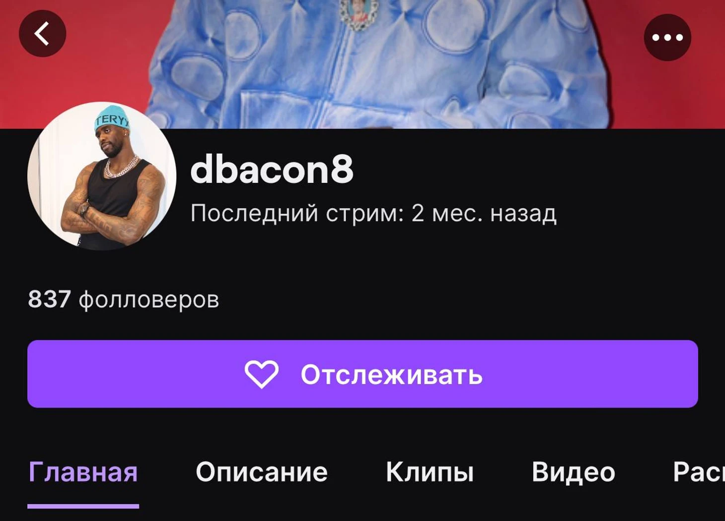 48. Кроме YouTube Бэйкон развивает свою медийную активность еще и на Twitch под никнеймом dbacon8. Там он, как правило, играет в видеоигру Fortnite и нередко появляется на совместных эфирах с Трентом Фрейзером.