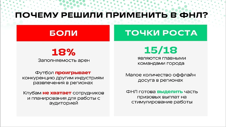 Идея заключалась в том, чтобы стимулировать клубы развивать свои маркетинговые стратегии и улучшать взаимодействие с болельщиками. Несмотря на то что многие клубы ФНЛ не имели достаточного количества специалистов по маркетингу, эта инициатива вдохновила их на поиск креативных решений. Клубы начали активно использовать социальные сети, организовывать мероприятия для фанатов и развивать свои бренды, что в итоге привело к росту. Клубы ФНЛ сталкиваются с целым рядом серьезных проблем, которые существенно замедляют их развитие. Одной из главных трудностей является низкая заполняемость стадионов – многие команды не могут привлечь достаточное количество зрителей на свои матчи, что негативно отражается на их финансовых показателях.