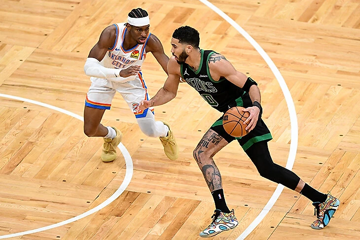 Йокич же мало того, что доминирует сам, ведет игру таким образом, что статистика выдает то, что легко принять за погрешность. Просто осознайте, лидером лиги по количеству очков, набранных в отрывах, стал не Леброн Джеймс, не Яннис или Энтони Эдвардс, а Кристиан Браун, которого Йокич с бильярдной точностью выводил один на один с кольцом своими дальними передачами. Влияние серба на игру «Денвера» неоспоримо, но Шэй своими действиями переводит «Оклахому» из разряда просто классной команды в разряд элиты.