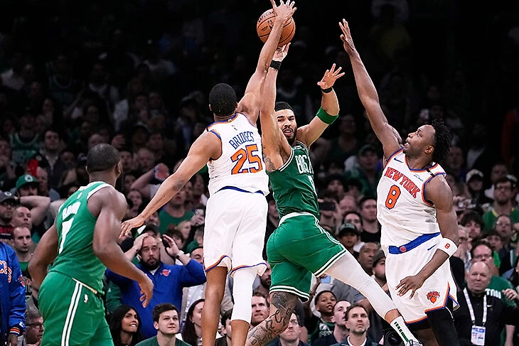 Попробовал поставить Митчелла Робинсона одновременно с Таунсом, сместив акцент на защиту «краски» против любителей побросать. В каждой игре серии так делать явно не стоит, рано или поздно у «Бостона» полетит. Но сегодня, с таким отвратительным процентом попаданий, план сработал.