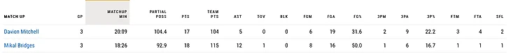 За время регулярки Халибертона в матчах против «Никс» держал Микэл Бриджес 18 минут и 26 секунд. Второй матчап по времени за весь сезон Тайриза, но для Халибертона это было более чем удобно: