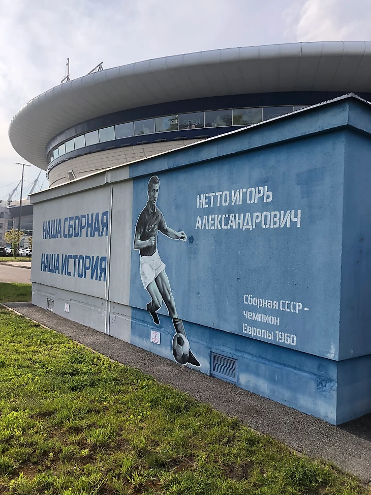 Перед игрой я заприметил у КСК «Арена», где принимает «Зенит» соперников, граффити с изображением Игоря Нетто: