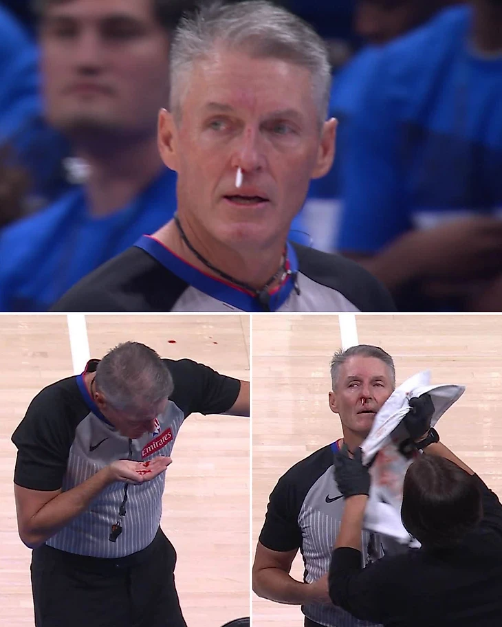 Судье разбили нос в полуфинале НБА. На 93-й секунде!