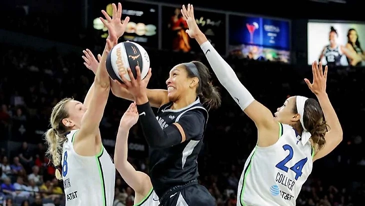 2. Чемпион сезонов 22 и 23 Лас Вегас (2 победы/1 поражение) – тоже четыре суперзвезды в старте: МВП Эйджа Уилсон, большая с топовой защитой + 3 опытных защитника Лойд (пришла в этом сезоне в обмене на К.Плам) + Челси Грэй + Янг, опытная скамейка, Бэки Хэмон на тренерском мостике.