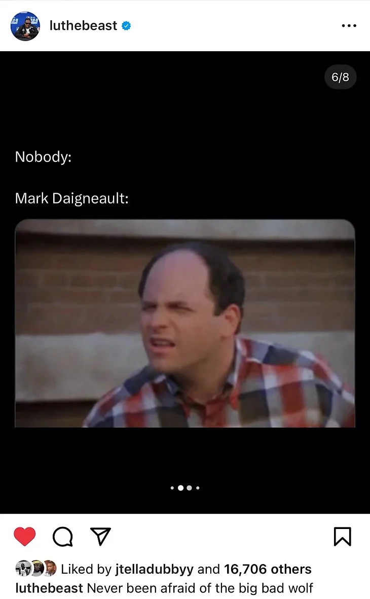 Такой вот пост публиковал в своих соцсетях защитник «Оклахомы» Лу Дорт.
