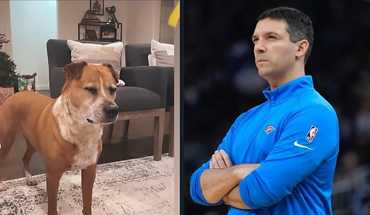 Ну, и собака. Да. В Оклахоме живет не только Марк Дэйгнолт, но и Барк Догнолт. Выглядят они примерно одинаково и оба болеют за «Тандер».