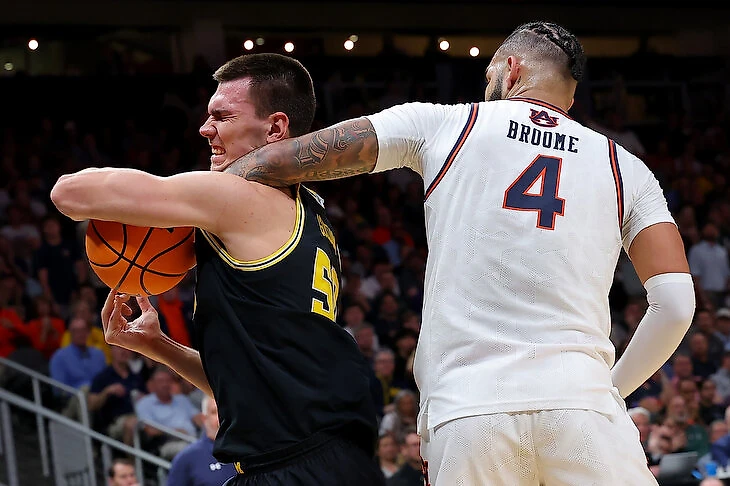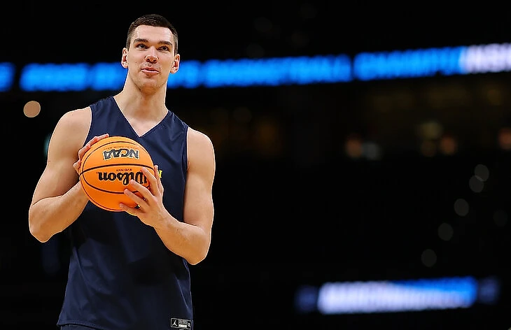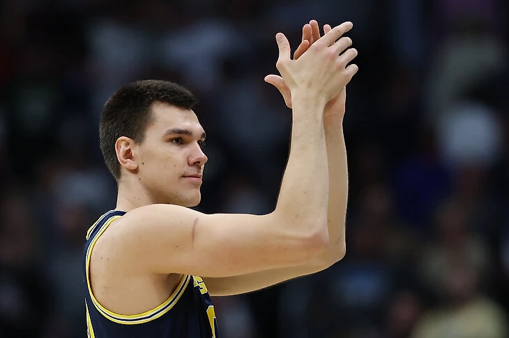 ● Голдин никогда не был выдающимся подбирающим в защите. Казалось бы, с его габаритами и умением использовать свою мощь он должен в этом преуспевать, но в колледже он ни разу не набирал в среднем 5 подборов в защите за матч, несмотря на то что играл не менее 20 минут в каждом из последних трех сезонов. Похоже, что его медленная реакция мешает ему: оппоненты слишком легко его обыгрывают. По данным CBB Analytics, когда Голдин был на площадке, соперники собирали на 2,3% больше подборов в атаке против Мичигана, чем когда он отдыхал.