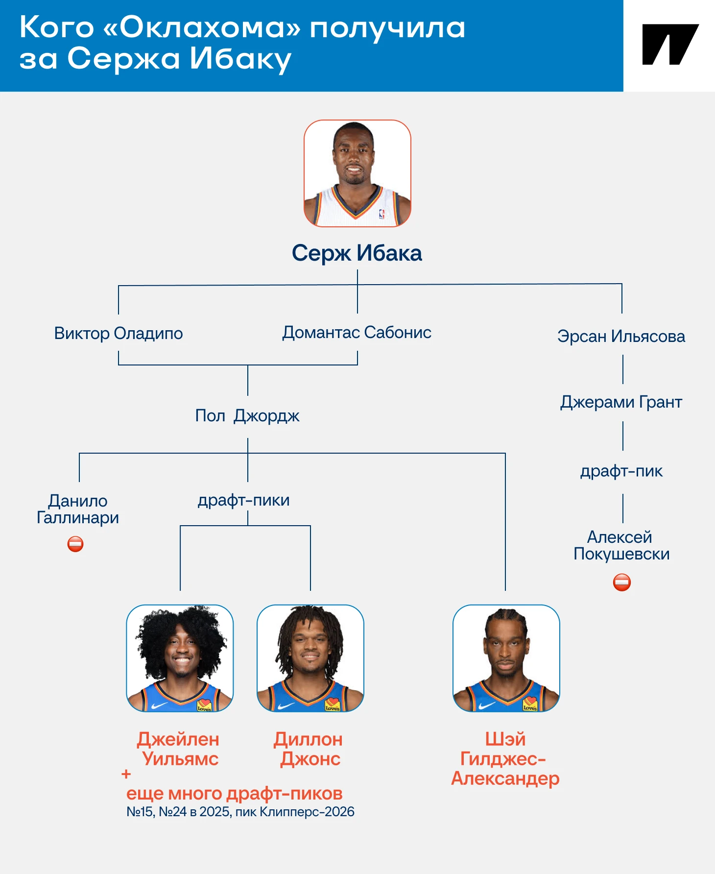 Всего через год «Оклахома» преобразует ту же компенсацию, что она получила за Ибаку, в Пола Джорджа (и даже сдача останется!). И начнет строиться «с нуля» – только всем бы такой «нуль», с Шэями, Гилджесами, Александерами и 30 будущими драфт-пиками.