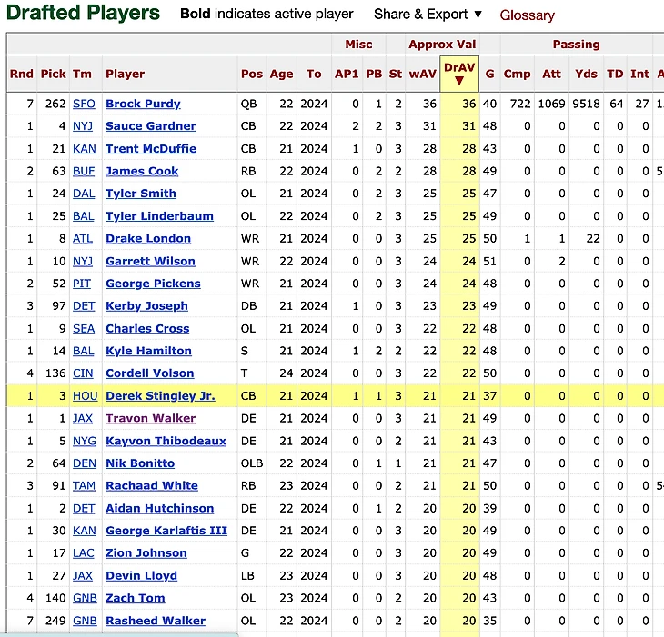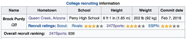 У Брока конечно все было еще более драматично в 2022 – ему вообще предсказывали что его никто на драфте не выберет и до последних минут последнего дня драфта так и было – но в итоге его самым последним 262-м номером выбрали СФ. Сейчас он самый успешный игрок с этого драфта по пользе принесенной своей команде не только среди 9 выбранных тогда квотербеков (он уже один накидал больше ТД чем остальные 8 вместе взятые), но и вообще среди всех 262 игроков, где он был самым последним – а в итоге стал самым лучшим.