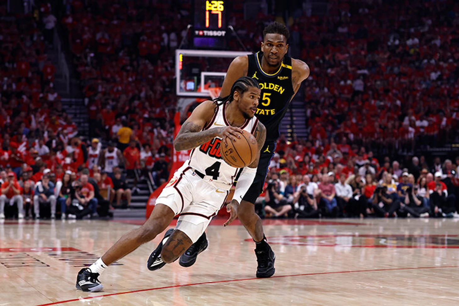 Джейлен Грин в серии с «Уорриорз» периодически появлялся и исчезал. Причем показывал признаки потенциала, пытался разыгрывать. Может и научился бы со временем, но «Хьюстон» решил, что может выиграть здесь и сейчас. С зарплатой по 35 млн в год нестабильный защитник многими воспринимается как негативный элемент.