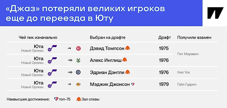 Это «Юта Джаз». А точнее, «Новый Орлеан», ведь в Солт-Лейк-Сити клуб перевезли только в 1979-м после пяти лет на юге США. Но за эти пять лет они наворотили…