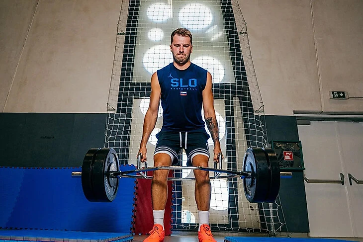 Его программа включает круговые тренировки: упражнения на верх тела, ноги и баскетбольные элементы. В зале, где Дончич тренируется каждое лето с подросткового возраста, раньше не было отягощений. Но в этом году он заказал гантели, штанги и медболы. Теперь он делает становую тягу, жимы над головой, спринты и прыжки.