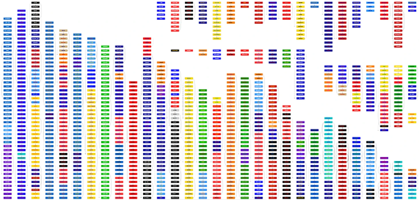 П.5. Плашки с фамилиями игроков на схеме раскрашены не в идеальные клубные цвета. Но приближенные к реальным. Я взял такую палитру из базовых оттенков, чтобы у двух клубов в одну эпоху цвета не повторялись. Где-то фамилии могут оказаться нечитаемыми в зависимости от цветопередачи вашего экрана. У меня нет вашего экрана, поэтому я настраивал все на свой.