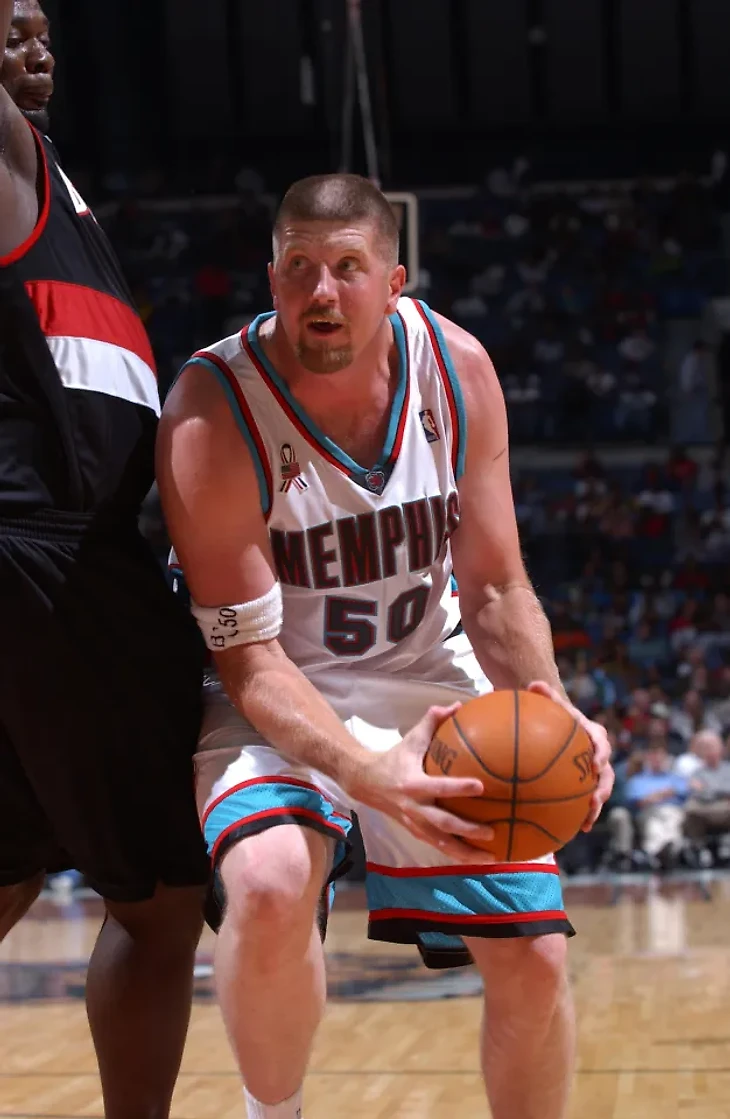 …играл за «Мемфис» только в предсезонке. И не факт, что вместе с Пау (протоколы тех игр сохранились хуже, чем фотографии). Это Брайант Ривз по прозвищу «Большая Деревенщина», который провел вообще все сезоны за «Ванкувер» от драфта до переезда. И потом из-за травм так и не смог выйти в официальном матче за «Мемфис». Но заработал 25 млн за два года! В 2003-м был 11-м по зарплате во всей НБА, опережал Кобе, Айверсона и даже MVP Данкана! Вот так Деревенщина. Деревенщинища!
