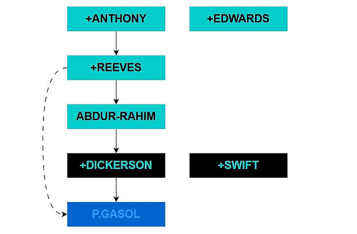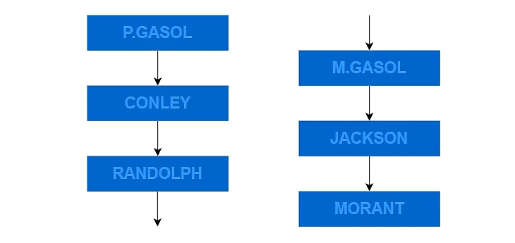 Цепь между Пау и Заком в таком случае по логике замкнет Гэй, потому что Конли переместится в очередь за Марком (он ушел из клуба позже испанца и был самым статусным на промежутке между Газолем и Джа, не считая отодвинутого в конец цепи Джексона), а между Конли и Джа будет стоять Диллон Брукс.