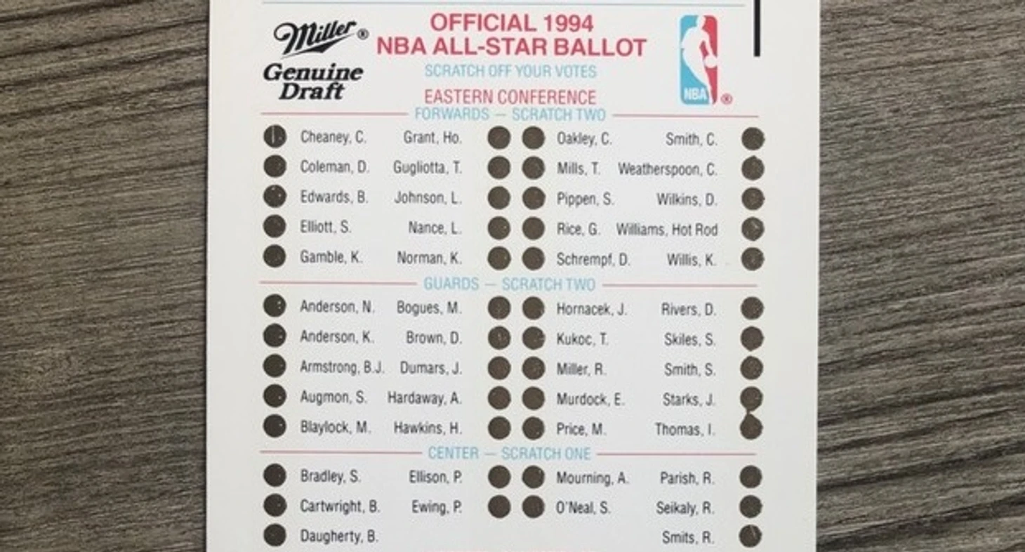 С одной стороны, Андерсон в теории был ближе к Матчу звезд – в 1994-м защитник получил 361 тысячу голосов, для попадания в старт команды Востока (куда болельщики поставили Би Джея Армстронга и Кенни Андерсона, вот такая кокнуренция) нужно было 494 тысячи, то есть норматив выполнен на 73%, Ник опередил и Пенни Хардуэя, и Скайлза. Впрочем, возможно, его в бюллетенях путали как раз с соседней графой, где был однофамилец Кенни. Или наоборот. К.Андерсон, Н.Андерсон – очень похоже, команды в бюллетенях не подписаны. Кто-то реально мог стать кандидатом-спойлером.