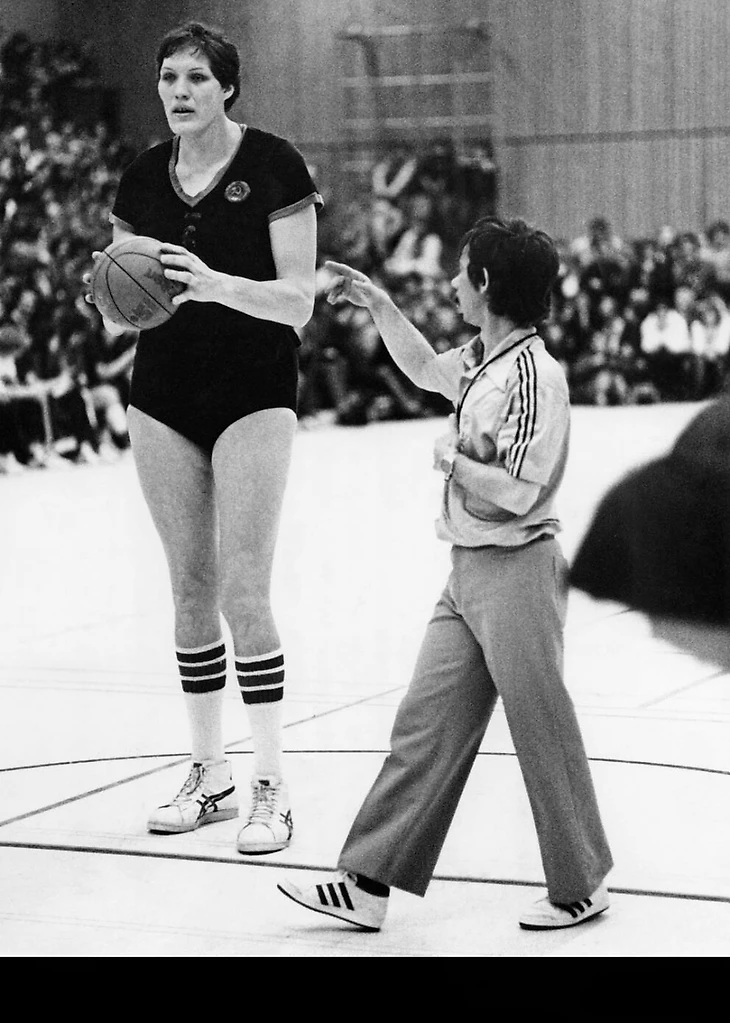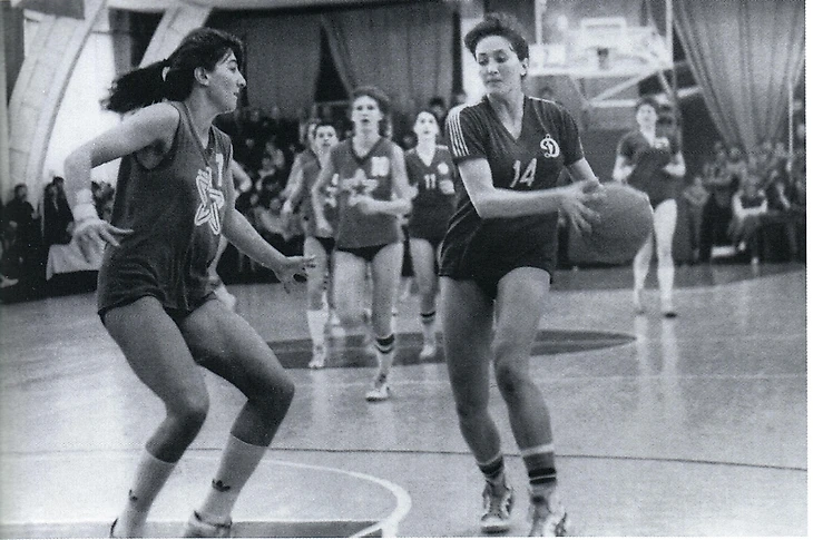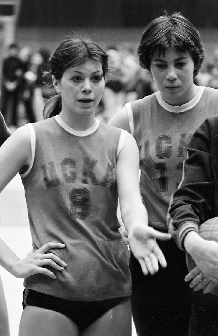 25 ноября 1982. Москва, УСК ЦСКА. Матч L чемпионата СССР «Динамо» (Москва) — ТТТ — 36:70. Ульяна Семенова — в центре, справа — Любовь Адайкина (№ 13)