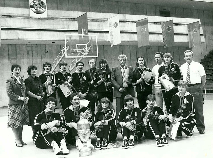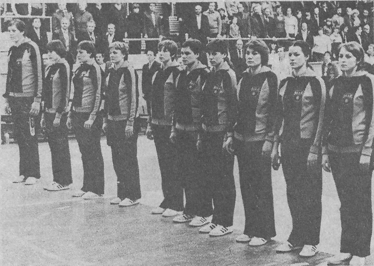2 марта 1983. Новосибирск. L чемпионат СССР. ТТТ — чемпион СССР. Слева направо: Ульяна Семенова, Лига Гринберга, Даце Зелтыня, Вита Элксне, Илзе Брумермане, Майя Шилиня, Илга Бриеде, Лорита Сауша, Инита Рытиня, Анете Муйжниеце