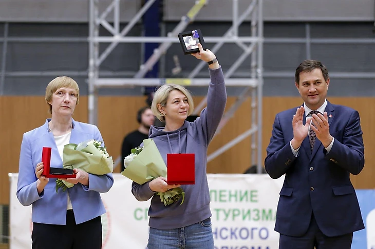 Апрель 2022. Минск. Церемония награждения медалями «За выдающиеся заслуги» и серебряными монетами Национального банка Республики Беларусь, посвященными 100-летию развития баскетбола в стране. Почетные награды Федерации баскетбола Республики Беларусь получают Татьяна Белошапка (слева) и Елена Швайбович