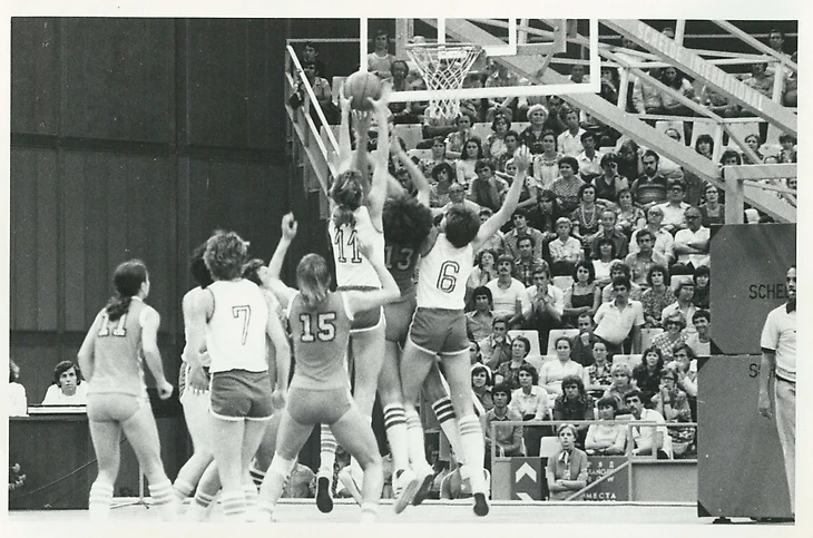 Февраль 1983. Дюссельдорф, ФРГ. Полуфинальный матч XXV розыгрыша Кубка европейских чемпионов «Агон 08» (Дюссельдорф, ФРГ) — ТТТ-«Даугава» — 52:49. Ульяна Семенова на линии штрафных