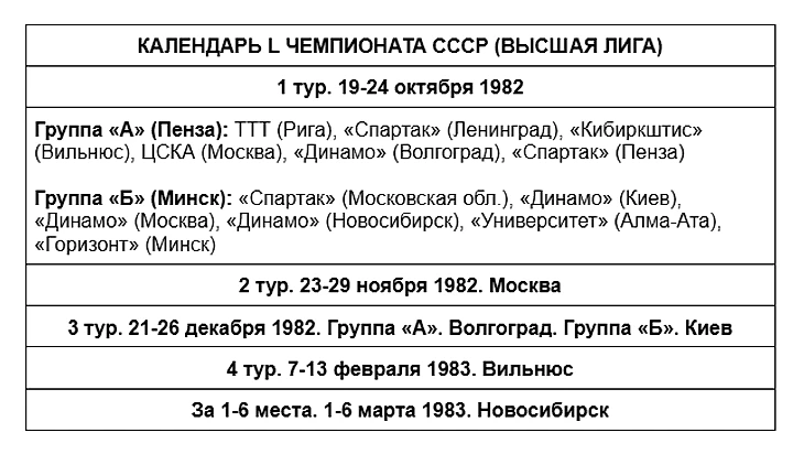 L чемпионат СССР. Высшая лига.Предварительные игры.19 октября 1982 — 13 февраля 1983