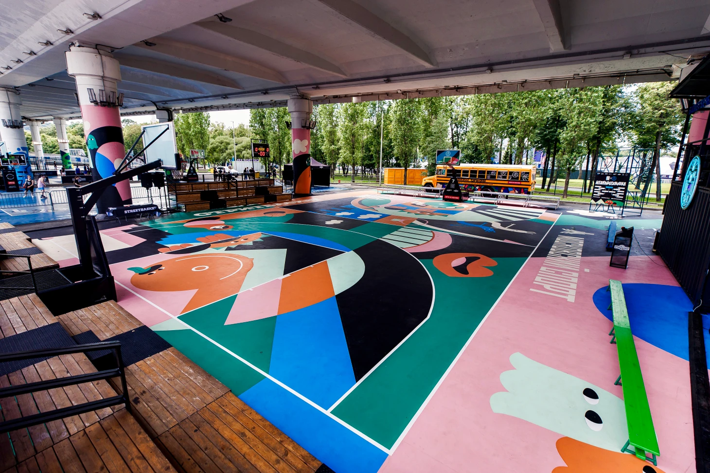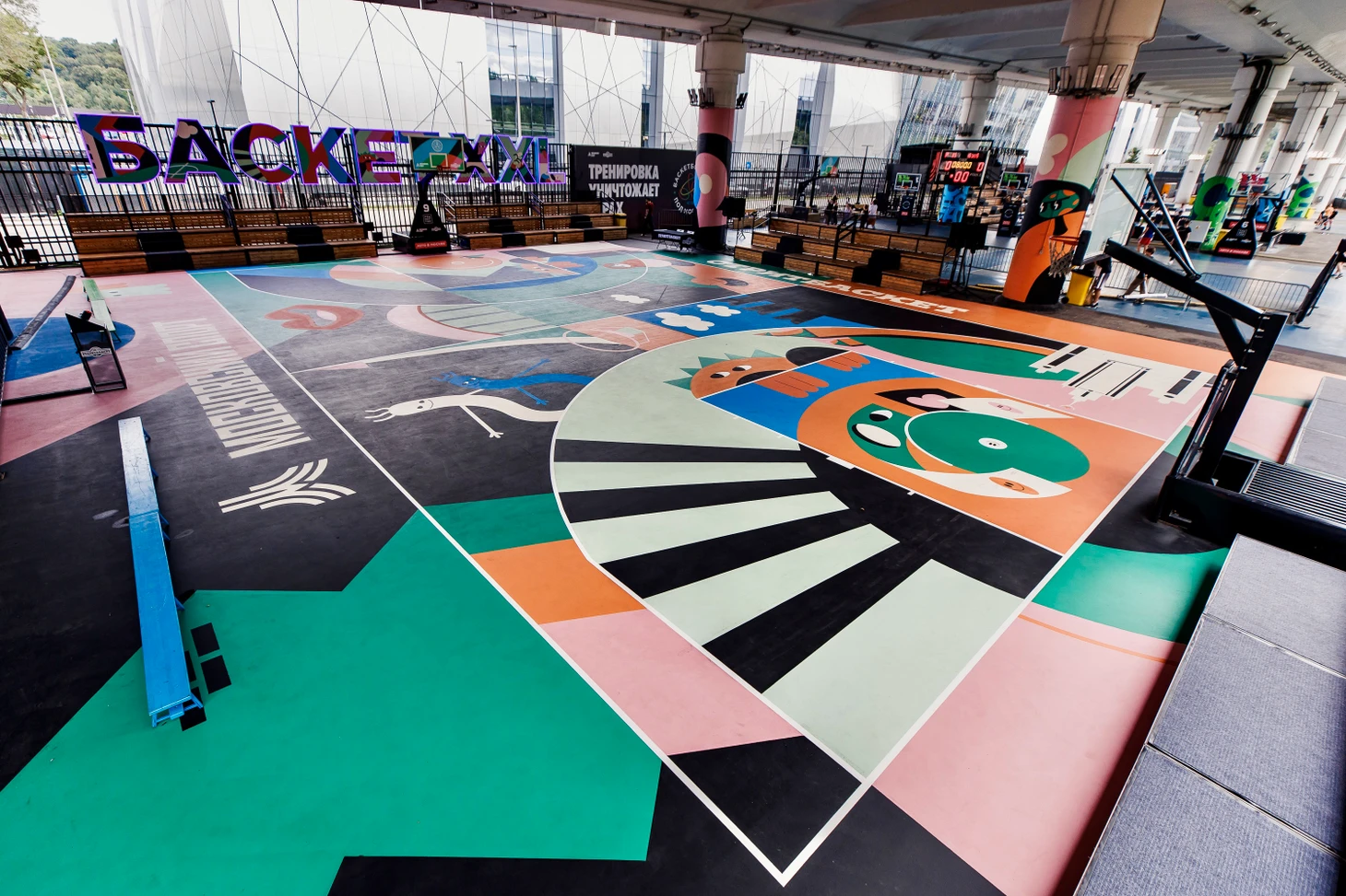 Арт-корт «ПодМостом» открыт! Его презентация прошла 7 августа в рамках «СтритБАСкет Тура» — совместного проекта Ассоциации уличного баскетбола и Департамента спорта Москвы. Этап «Медиаостановка» превратился в настоящую уличную спортивную тусовку: турнир среди топовых команд («SAYONARA BOYS CLUB», «HOOPS», «ROCKET TEAM», «ALIKSONTEAM», «DAWGS», «GRU TEAM», «SKY CLUB», «BLATOSPHERA») привлек внимание большого количества зрителей. На площадке играли и наблюдали звезды российского баскетбола — чемпион Европы Антон Понкрашов и чемпион НБА Тимфоей Мозгов.