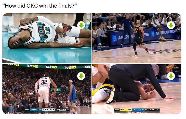 ● Тайриз Халибертон: получил растяжение икроножной мышцы в 5-м матче финальной серии против «Тандер», но продолжил выступления на свой страх и риск. Последствия слишком известны и печальны, чтобы в очередной раз говорить о них подробно.