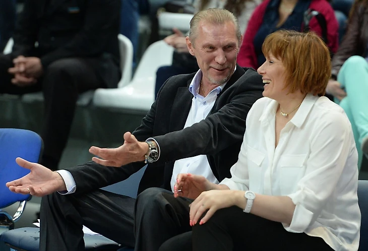 2014. Москва. Отборочный матч на чемпионат Европы Россия — Нидерланды — 69:44. Главный тренер сборной России Анатолий Мышкин и Элен Шакирова
