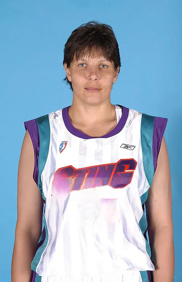 22 июня 2002. Шарлотт, США. Елена Шакирова в майке команды женской НБА «Шарлотт Стинг»
