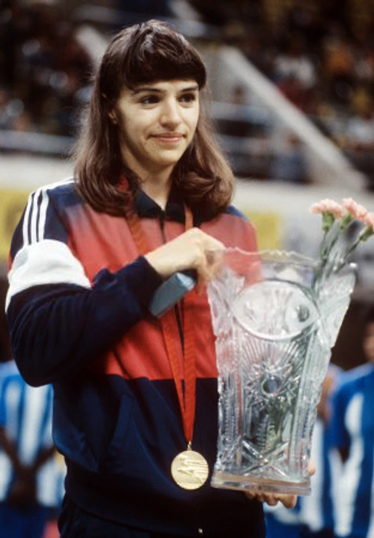 Август 1984 года. Москва. Дворец спорта «Динамо». Людмила Рогожина (Муравьева) с кубком победителя Международных соревнований «Дружба-84»