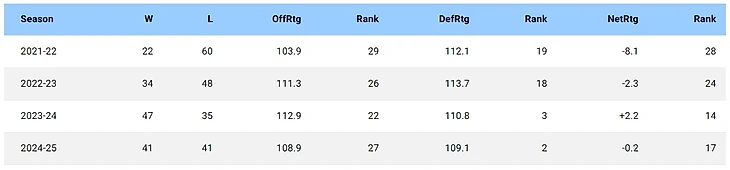 Однако в прошлом сезоне «Мэджик» сделали шаг назад, несмотря на то, что это был их лучший оборонительный сезон за последние 16 лет. По этому показателю команда заняла второе место в лиге, пропуская на 4,6 очка меньше на 100 владений по сравнению со средним показателем НБА. В сезоне 2024–25 команда Оклахома-Сити «Тандер» стала лучшей по обороне в НБА, показав впечатляющий Defensive Rating (DRtg) — 107,5. Команда в среднем пропускала всего 107,5 очка на 100 владений.