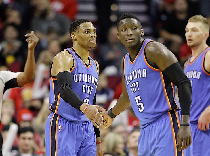 И, наконец, третий вопрос – думало ли над предыдущими двумя руководство «Оклахомы»? Руководство «Оклахомы» ответило однозначно, перед сезоном обменяв в «Орландо» Сержа Ибаку, рим-протектора с 35,9% трехочковых за карьеру. Обменяв на Виктора Оладипо, ведь, само собой, главное, что нужно команде с Уэстбруком – это атлетичный боллхэндлер.