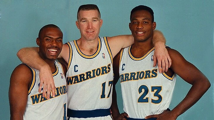 Если кто не помнит, «Run TMC» – прозвище звездного трио «Голден Стэйт», по первым буквам имен Тима Хардуэя, Митча Ричмонда и Криса Маллина. На рубеже десятилетий эта версия «Воинов» была, возможно, самой зрелищной командой лиги вообще – быстрое нападение, высоченный темп, Мануте Бол, кидающий трехочковые. И даже такой незрелищный, казалось бы, гражданин, как Маллин с его армейской площадкой на голове, идеально вписывался в общую картину.