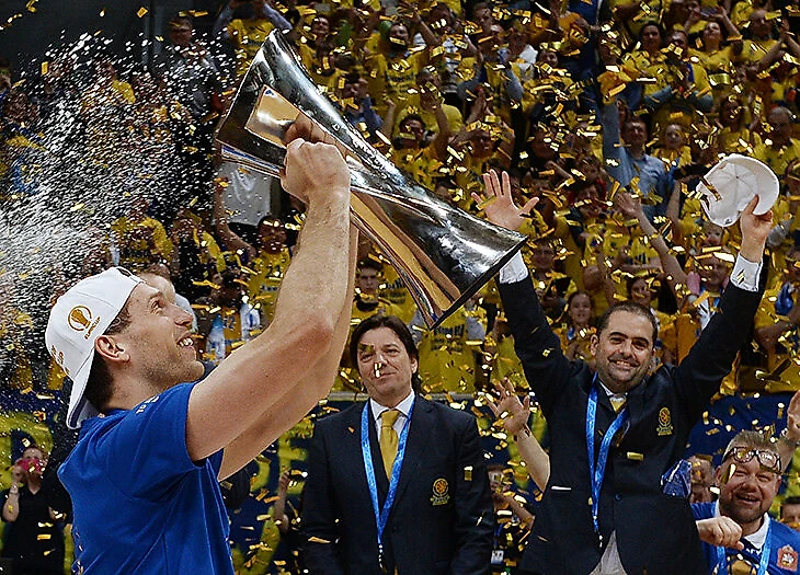 Сергей Моня празднует победу в Еврокубке, 2015.