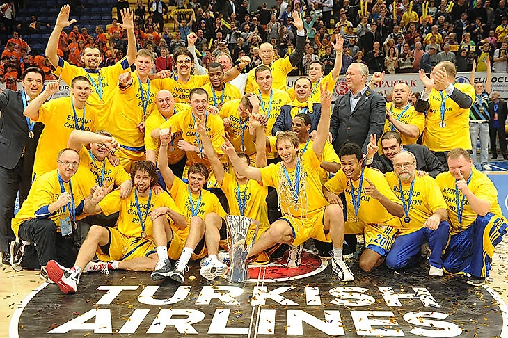 УНИКС с Еврокубком-2011 – Мачей Лампе, Хасан Ризвич, Захар Пашутин, Марко Попович, Терелл Лайдэй, Келли Маккарти и Славко Вранеш.