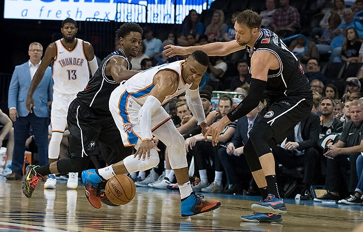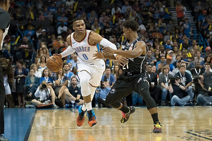 Уэстбруку, на самом деле, пришлось очень непросто. Действующий MVP НБА, только-только подписавший с ОКС новый контракт на 205 млн долларов, мучился в сражении с миниатюрным соперником на обеих половинах площадки.